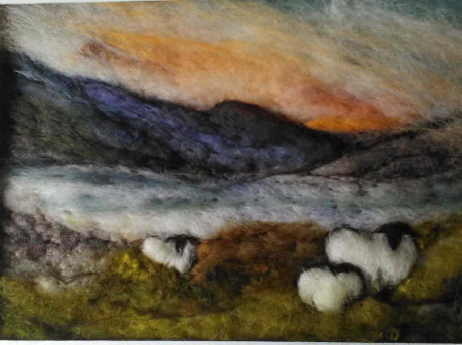 Each kit includes a piece of foam large enough to work the picture on. A felting needle. 1 bag of hand dyed fleece. 1 bag of natural coloured fleece and a bag of carded hand dyed fleece for the sky. A piece of backing to work the picture on. Instructions with step by step photos. As the amount of fleece used for the project is so small then extra colours of fleece have been added to allow you to experiment further. Ideas for making brooches and other items are also included in the instruction booklet.
